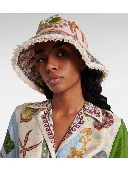 Laneni šešir s cvjetnim printom