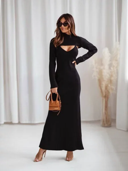 Haljina sa stojećim ovratnikom s volanima