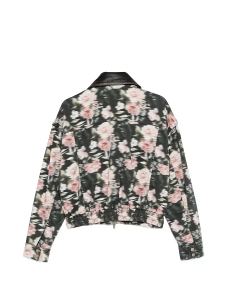 S ovratnikom kožna jakna s cvjetnim printom s printom
