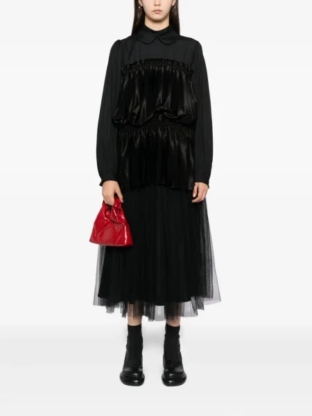 Noir Kei Ninomiya Vunena midi haljina s volanima iznad koljena