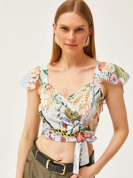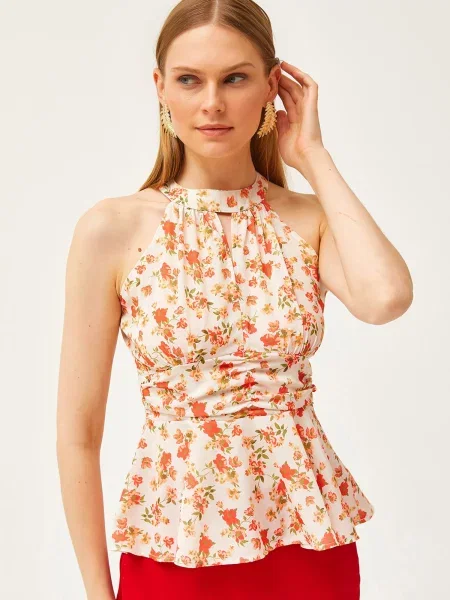 Olalook Bluza sa perjem od krep s halter ovratnikom