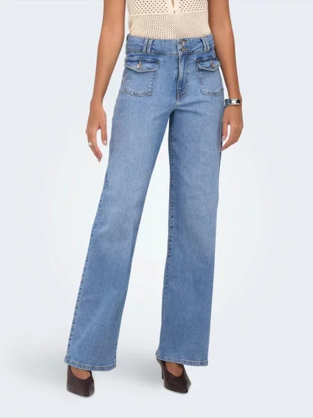 Ženske široke traperice našiveni džepovi