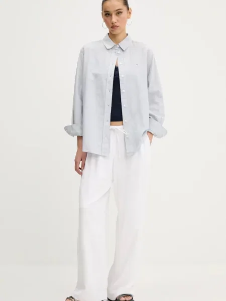 Tommy Jeans Košulja s dodatkom lana za žene regular s klasičnim ovratnikom